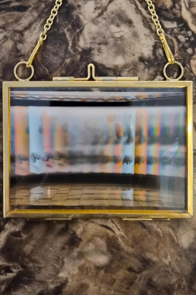 What Light Sees is diffraction grating photography — made by holding an optical grating over a phone camera, splitting ordinary light into its hidden spectrum. Every image is found, not staged. Each print is signed, titled, and sourced on the back by hand.